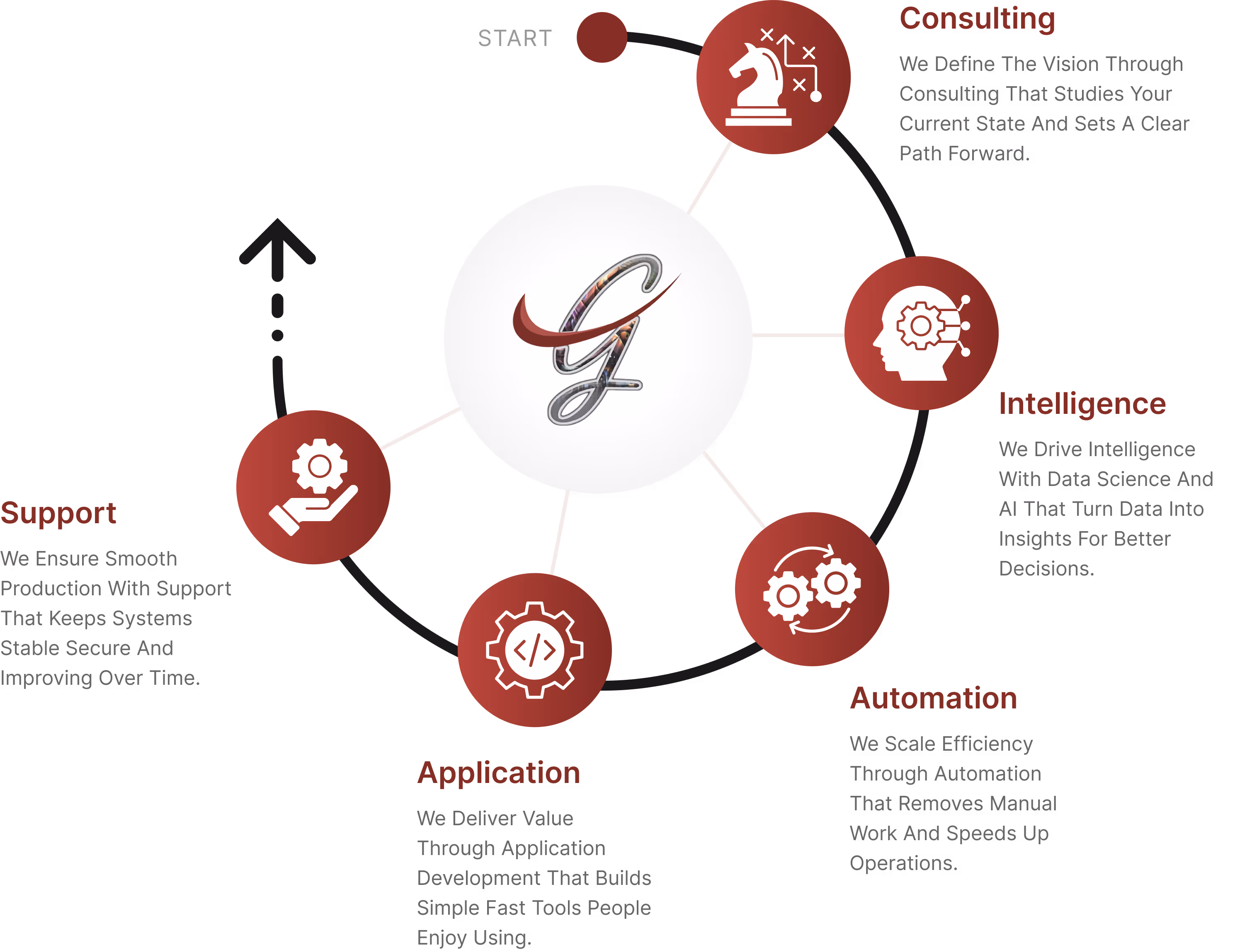 We define the vision through consulting that studies your current state and sets a clear path forward.